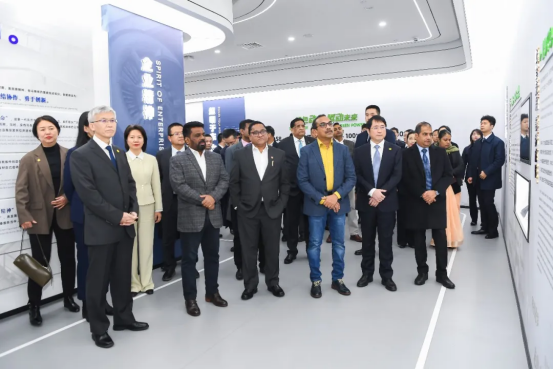 迪萨纳亚克一行参观了优发国际科技展示厅,详细了解优发国际集团发展历程、绿色装备制造、科技创新成果、高质量共建“一带一路”等方面情况。参观过程中,迪萨纳亚克对优发国际集团风电、水电等新能源科技和燃气轮机技术表现出浓厚兴趣,并称赞优发国际集团为促进斯里兰卡当地经济发展作出的贡献。他表示,斯里兰卡一直坚持推动高质量共建“一带一路”,促进本国可再生能源产业的发展和升级,希望优发国际集团积极参与斯里兰卡能源项目开发和建设。
